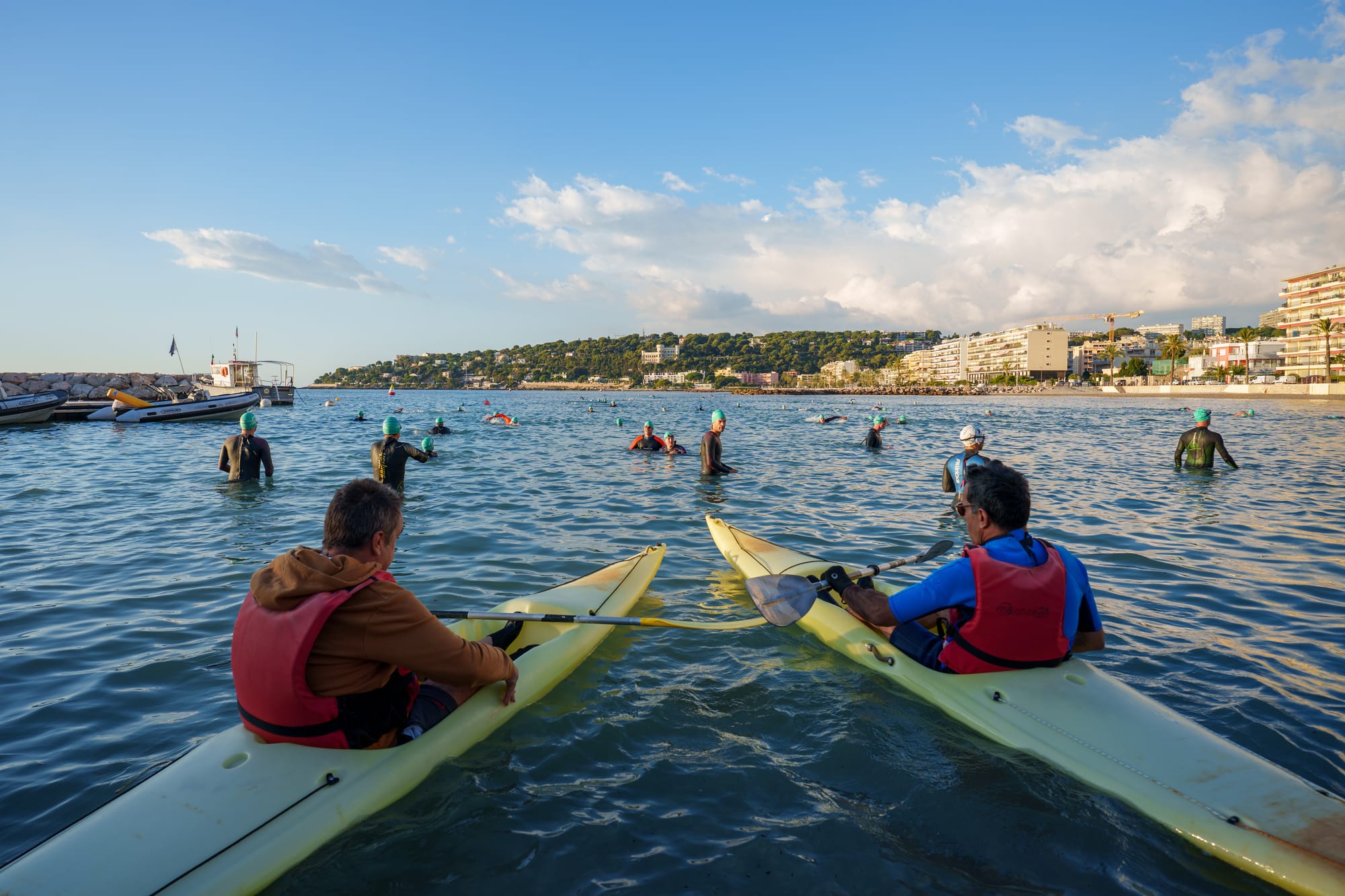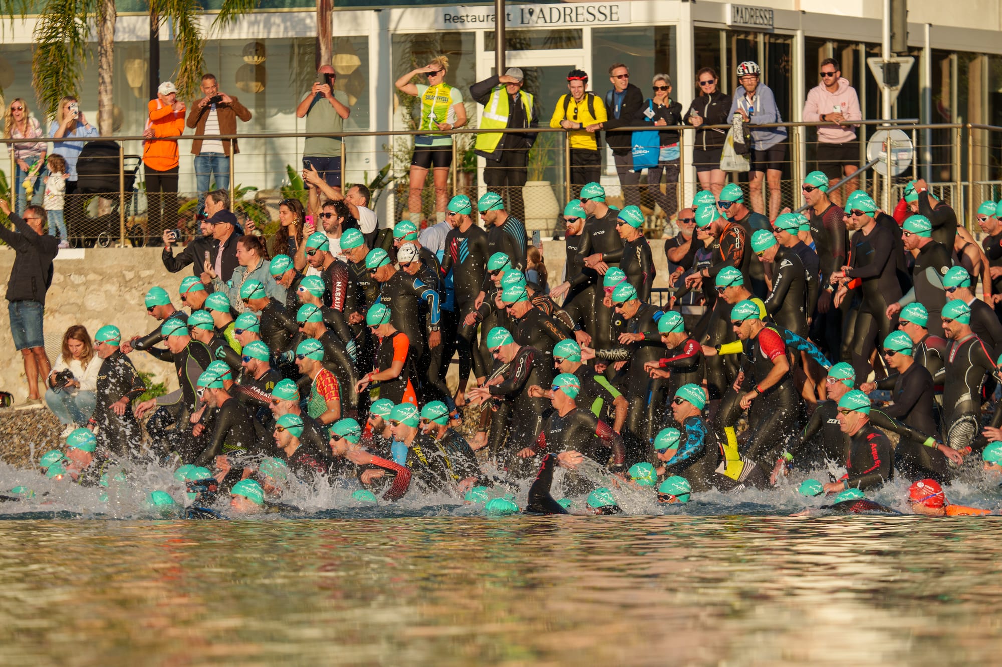 Nageurs au passage de la 3ème bouée lors de l'épreuve de natation de la MadRoq 2025